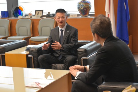 大井川知事からの感謝状授与の後、弊社が処理の協力をした「石岡市小見地区の不適正保管産業廃棄物撤去の代執行」や業界の近況、災害廃棄物処理・鳥インフルエンザ防疫業務などの意見交換と、来年夏に完成する株式会社カツタの第2号炉(ごみ発電施設)などの説明を行いました。