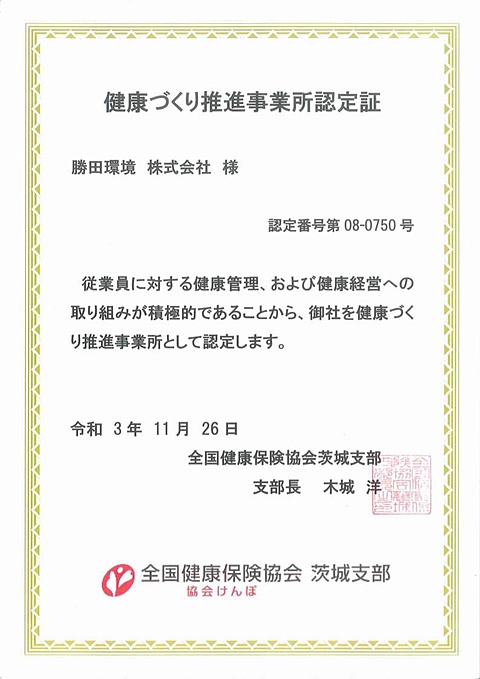 イベントニュース健康づくり推進事業所認定証 健康づくり推進事業所認定証 2021年11月26日 従業員に対する健康管理、および健康経営への取り組みが積極的であることから、協会けんぽ様より、健康づくり推進事業所として認定されました。 関連記事 磯崎自治会主催 「心と体の健康増進Fes.」 イベントニュース 2025年10月5日 新人指導員 イベントニュース 2025年9月22日 スカニア(外車トラック)購入について イベントニュース 2025年8月20日 BBQ イベントニュース 2025年8月8日 おすすめの記事 磯崎自治会主催 「心と体の健康増進Fes.」 新人指導員 スカニア(外車トラック)購入について BBQ 還暦(定年)祝い もっとロードする