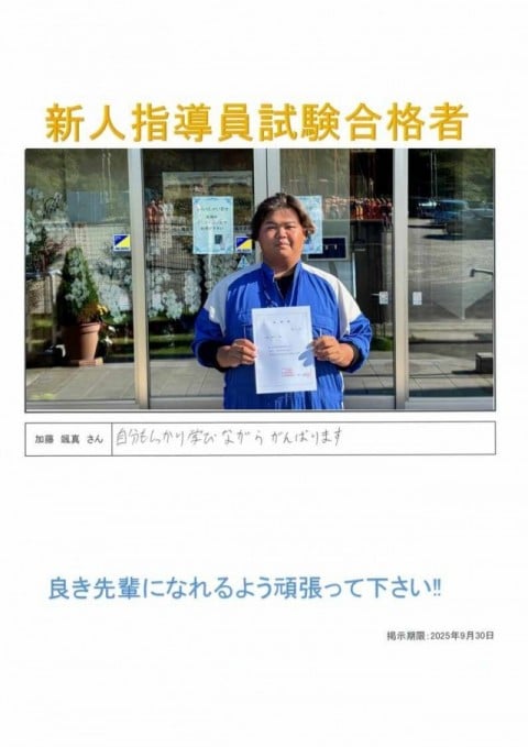 イベントニュース新人指導員 新人指導員 event 2025年9月22日 2025年9月22日(月)に新入社員を指導する新人指導員試験の合格発表が行われ、試験者全員(1名)が合格しました。新人指導員には今後1年間、新人指導員手当として毎月3,000円が支給されます。 関連記事 磯崎自治会主催 「心と体の健康増進Fes.」 イベントニュース 2025年10月5日 スカニア(外車トラック)購入について イベントニュース 2025年8月20日 BBQ イベントニュース 2025年8月8日 還暦(定年)祝い イベントニュース 2025年7月18日 おすすめの記事 磯崎自治会主催 「心と体の健康増進Fes.」 スカニア(外車トラック)購入について BBQ 還暦(定年)祝い 茨城県貯水槽維持管理協会会長表彰 もっとロードする