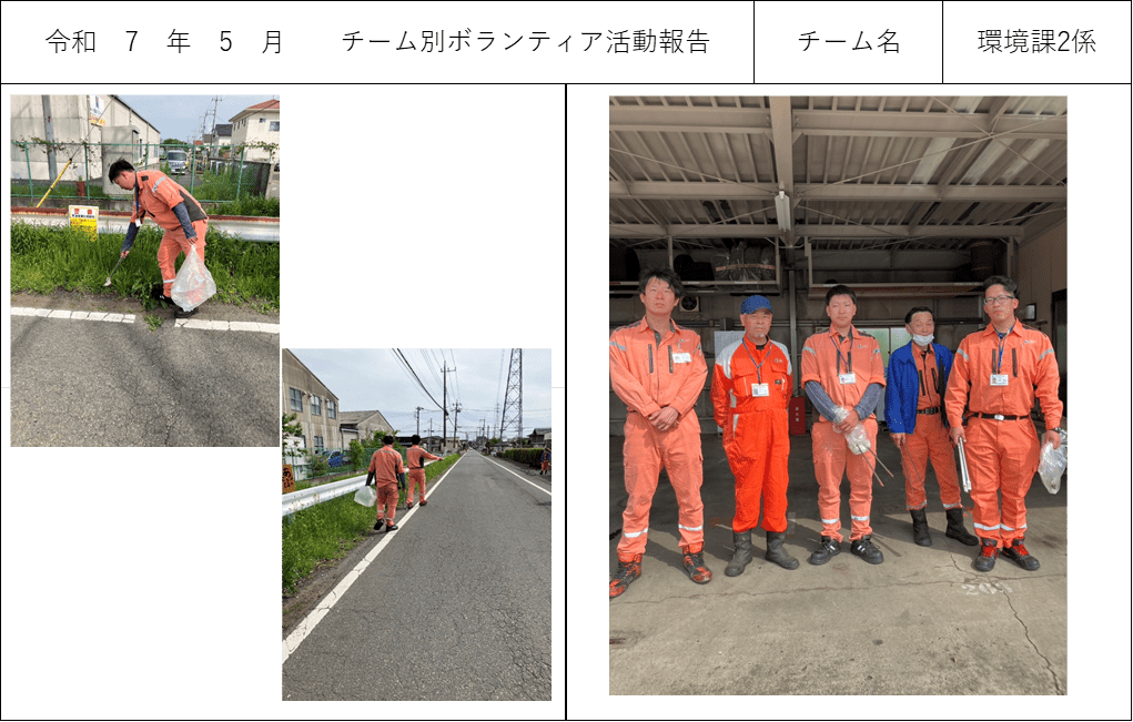 2025年5月16日(金)に環境課2係で本社事務所周辺地域のボランティア清掃を行いました。