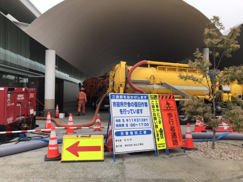 2023年の台風13号の被害により、日立市の汚泥清掃、各仮置き場のごみ、流木などを処理しました。