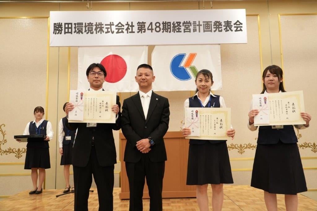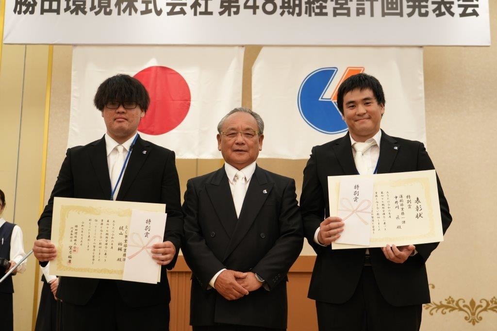 第一部では永年勤続表彰、環境整備表彰、優秀社員賞、優秀新人賞、特別賞、副社長賞、常務賞など数多くの表彰がありました。経営計画発表の場では望月福男社長が会長へ、望月徹男副社長が社長への就任発表があり、新たな時代へ向けたバトンタッチがありました。望月徹男新社長からは第48期の経営計画についての力強い発表がありました。