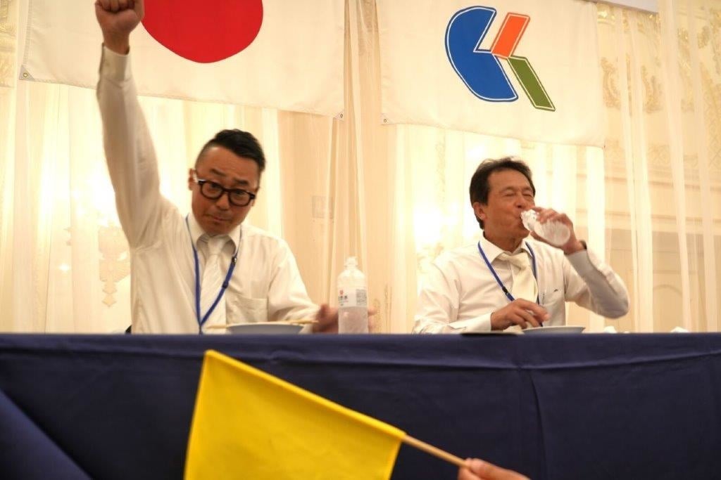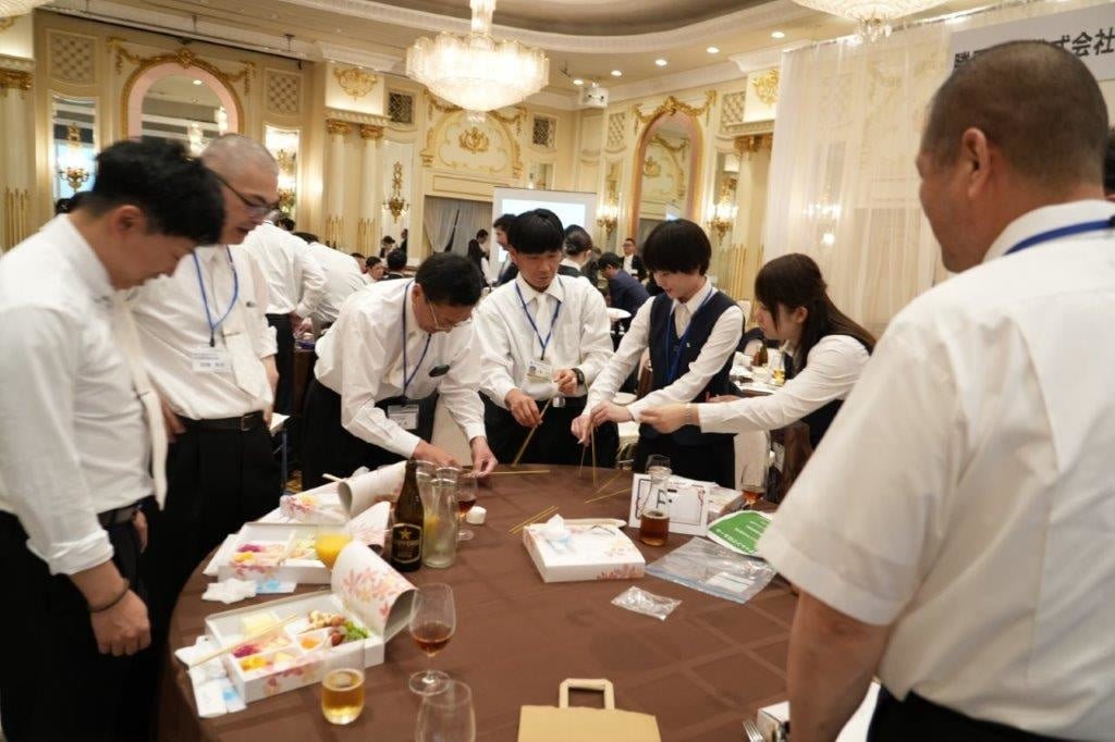 第二部の懇親会では第一部とは違う和やかな雰囲気のもと新入社員紹介、テーブル別対抗イベント、役員との早食い対決、動画上映、じゃんけん大会など盛りだくさんの内容で大いに盛り上がりました。