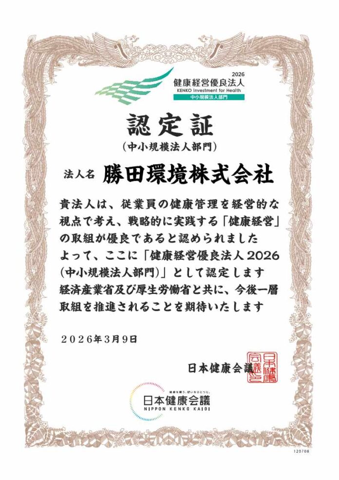 日本健康会議が認定する2026健康経営優良法人に認定されました。